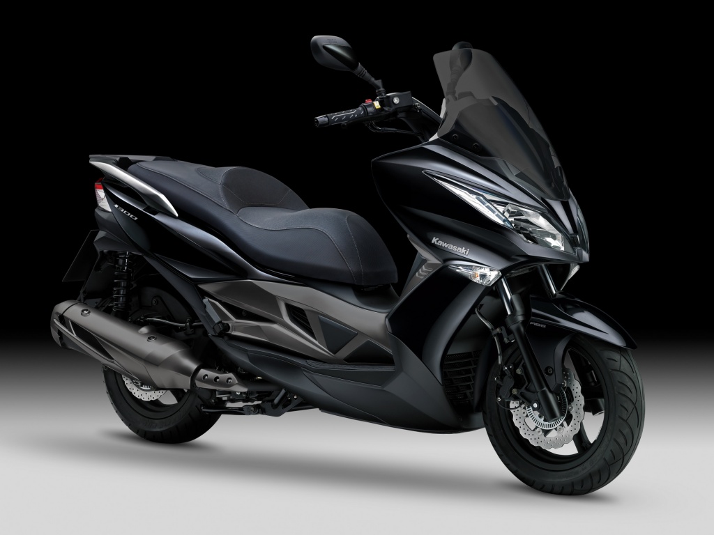 Комплектация Kawasaki J300 оснащена вариаторной коробкой передач, 0.3 литровым двигателем (28 л.с.). Стоимость данного скутера составляет 423 000 руб.