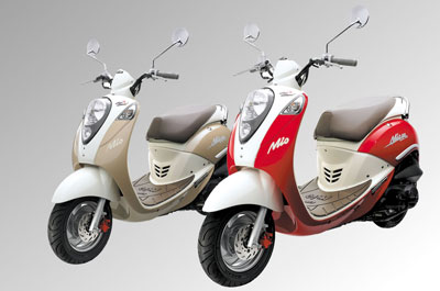 Скутер Sym Mio является более современным вариантом по сравнению с ретроскутером Sym Fiddle, хотя он также выполнен в стиле "ретро". В качестве силового агрегата использован четырехтактный двигатель рабочим объемом 50 или 100 см3. На колесах могут устанавливаться как барабанные, так и дисковые тормоза.